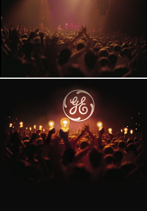GE Concert. We created a light bulb to strip into the hands at the concert. The stock image of the concert was the only art provided.